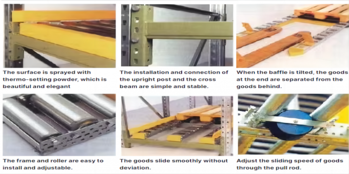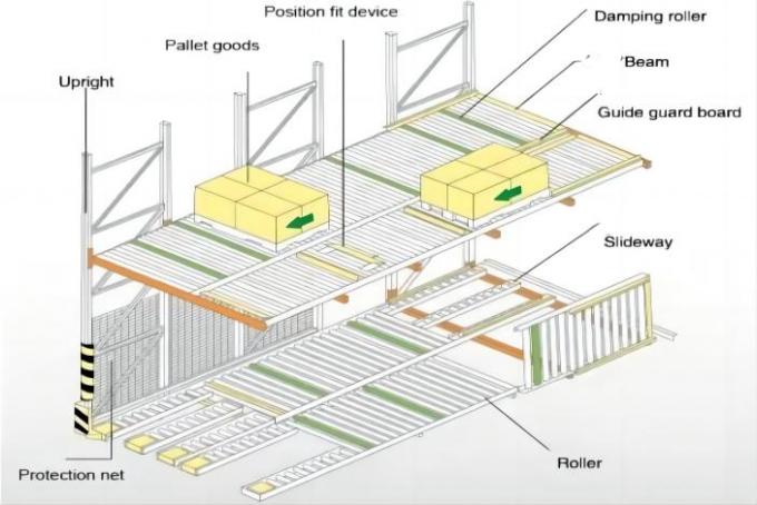 By using roller system or pallets with roller and under the influence of gravity, "first in and first out" for the goods is achieved.